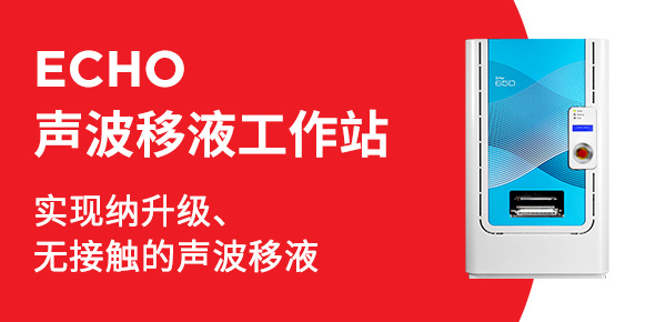 Echo®移液系统的面世,使移液技术领域发生了翻天覆地的变化。Echo®移液工作站结合创新的动态液体分析技术™(DynamicFluid Analysis™)和声波移液技术(Acoustic Droplet Ejection) 将超声波能量聚焦于液体液面,使母板孔内的微量液滴转移至目标孔内,准确地移取各种液体,应用跨越许多科学领域,包括药物发现、基因组学、合成生物学和个体化医疗等。