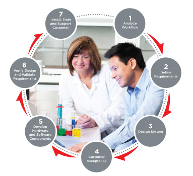 每个实验室都与众不同。这就是为什么我们不仅仅局限于在实验室中安装仪器。针对整合液体处理系统,我们提供质量控制的产品开发流程,包括深入的工作流程分析,使我们的团队能够发现优化工作流程的机会,确定理想自动化解决方案,满足您的实验室需求、挑战和目标。